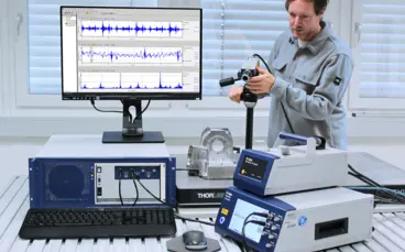 The laser Doppler vibrometer VibroOne® is the one-box solution for non-contact vibration measurement up to 3 MHz. It is specifically designed for tightly packed setups, whether in research laboratories, challenging production environments or for non-contact analysis of tiny details on microstructures or biomedical probes. The optional inline HD+ camera helps positioning the laser precisely and provides proper test documentation.
