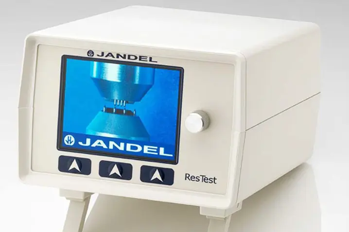 Polytec offers the RM3000+ for performing four-point measurements. The device provides constant currents between 10 nA and 100 mA and measures voltages from 0.001 mV to 1000 mV.