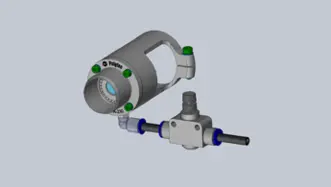 For installation in industrial production lines. Allows fine adjustment of the tilt and rotation angles by ± 1.3°.