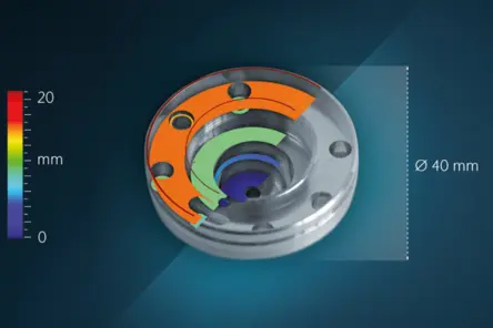 With the telecentric optics and a long working distance, Metro.Lab enables measurements near steep edges and into features like drilled holes, while keeping a safe gap to the part.