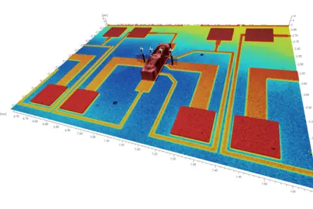 The new and unique 0.6x lens literally expands your view: Micro.View allows the analysis of high-resolution surface roughness, texture or microstructures using classic 20x to 111x. A single click with automatic lens switch to 0.6x allows for a seemless transition to large-area form or flatness measurements. Examine microstructures on large scale without stitching. Reveal all structural details while keeping an eye on form parameters, warpage or large area steps.