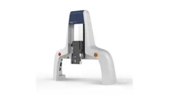 Test stand providing ample workspace. With motorized z-axis, travel range 200 mm.
