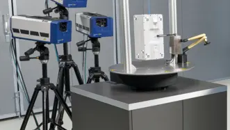 RoboVib® Bench は、ポリテックの最先端の光学式 3D スキャニング レーザドップラ振動計を使った自動モード解析システムです。設定は簡単で、ポリテックのスキャニング振動計のワークフローにシームレスに統合できます。試験サンプルの位置決めを自動で行うため、手作業による位置決めの手間が省けます。RoboVib® Bench は、360° の総合的な振動測定を、片側からの測定と同じように簡単に行えます。