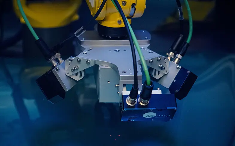 Because it’s designed for seamless process integration, compatibility with standard robots and existing quality assurance systems was also a priority. A triangulation system with three lasers ensures precise orthogonal alignment of the measurement head, even for curved surfaces.