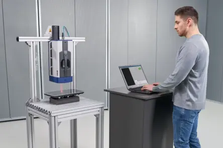 RoboVib® Bench enables automated and full-body experimental modal analysis using Polytec’s optical 3D scanning laser vibrometers. Its easy to set-up hardware and software integrates seamlessly into the Polytec scanning vibration measurement workflow and saves time by automatically repositioning the devices-under-test (DUT) instead of a manual and tedious relocation of the sensor setup. 360° measurements of the DUT are as easy as a measurement from just one side.