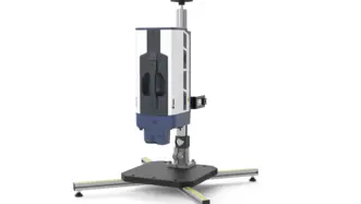 Test stand for precise vertical positioning of the VibroScan QTec Scanning Vibrometer for measurement on small objects