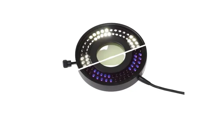 Il s'agit du seul éclairage annulaire à segments sur le marché dans lequel la lumière blanche et les LED UV sont installées e alternance en huit segments.